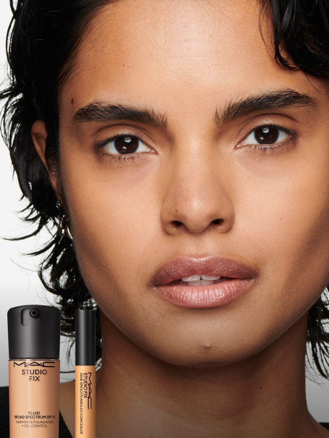Achieve a believable soft-matte look with Studio Fix Fluid SPF 15 and 36HR Smooth Angles Concealer.