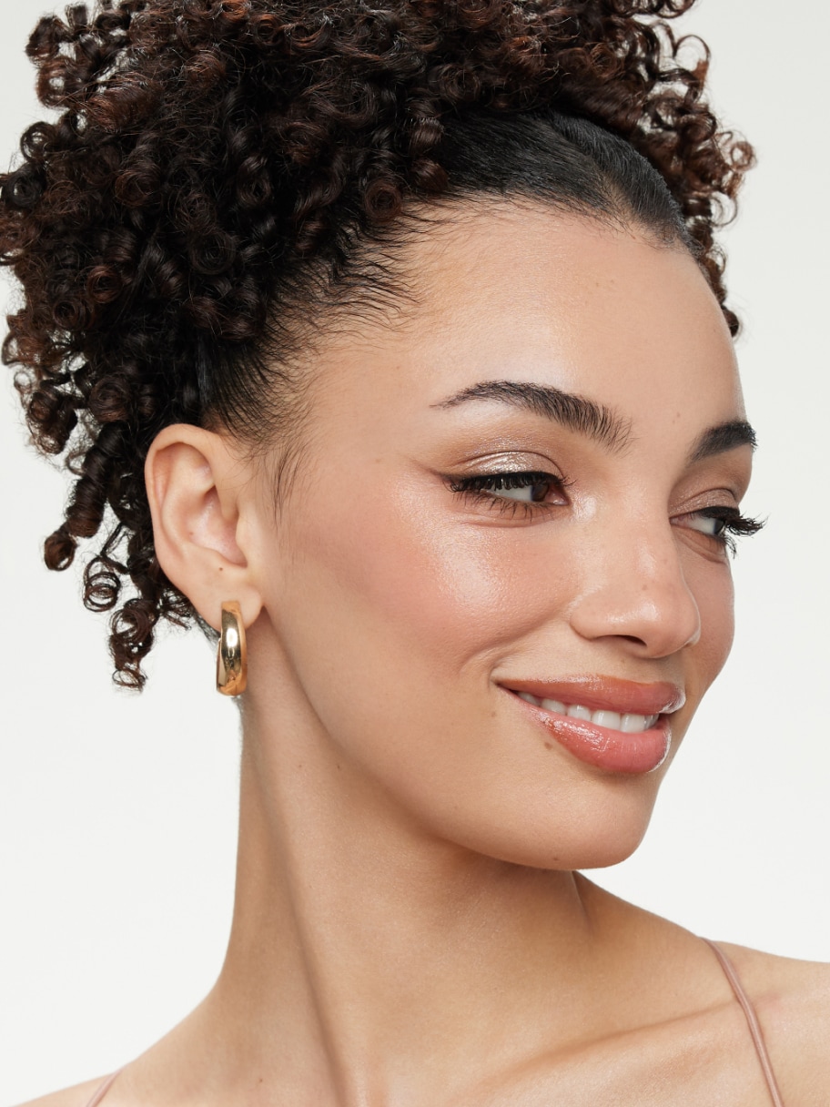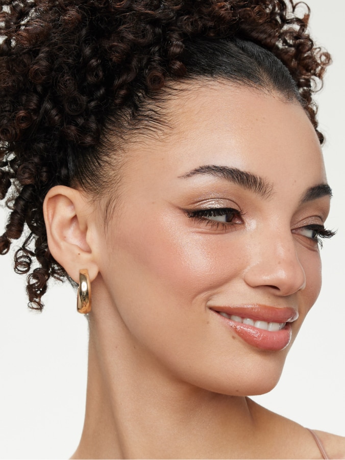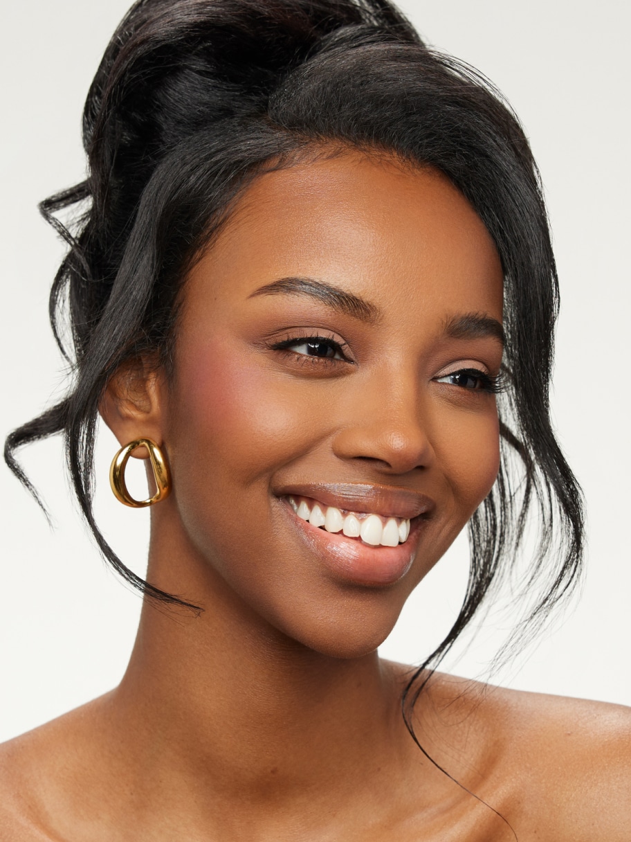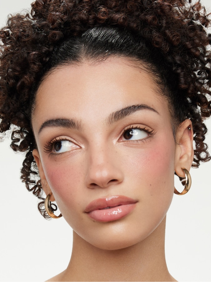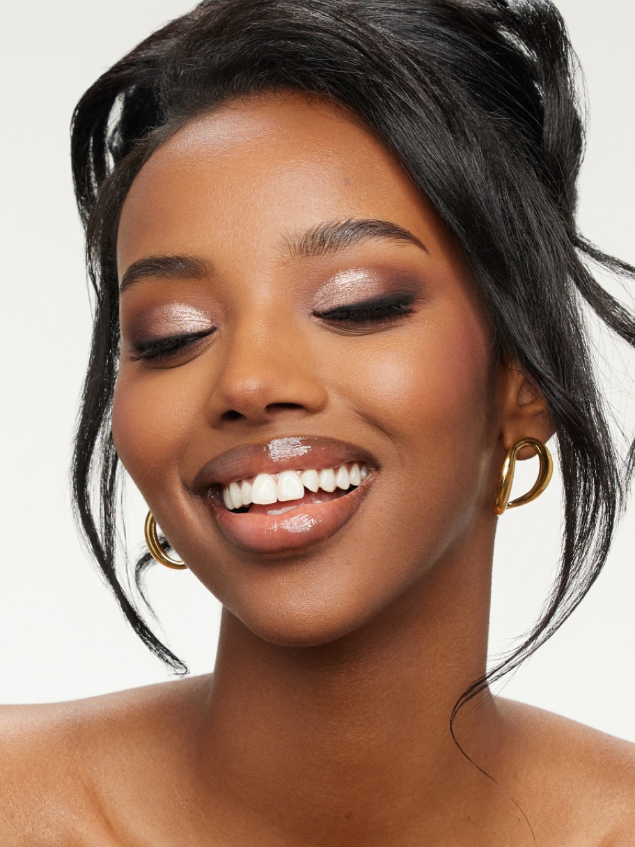 Create a polished look with velvet-matte skin, subtle definition, and a glossy lip.